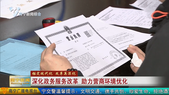 南宁市政务服务局自贸审批服务科工作人员张若眉:“我们从营业执照照面的经营范围可以看到很明显的区别:以前执照的经营范围上面会写满了企业所有的经营范围,密密麻麻地全部都会显示;我们改革商事确认制改革之后的经营范围就不显示在执照上面了,这样就赋予了企业更大的自主经营权,也是优化营商环境的改革。”