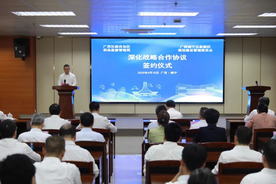 五象新区党工委委员、管委会副主任何尚汉,自治区药监局相关处室、直属单位,南宁市市场监管局,五象新区(自贸试验区南宁片区)管委会有关部门,南宁综保区管委会负责同志参加签约仪式。