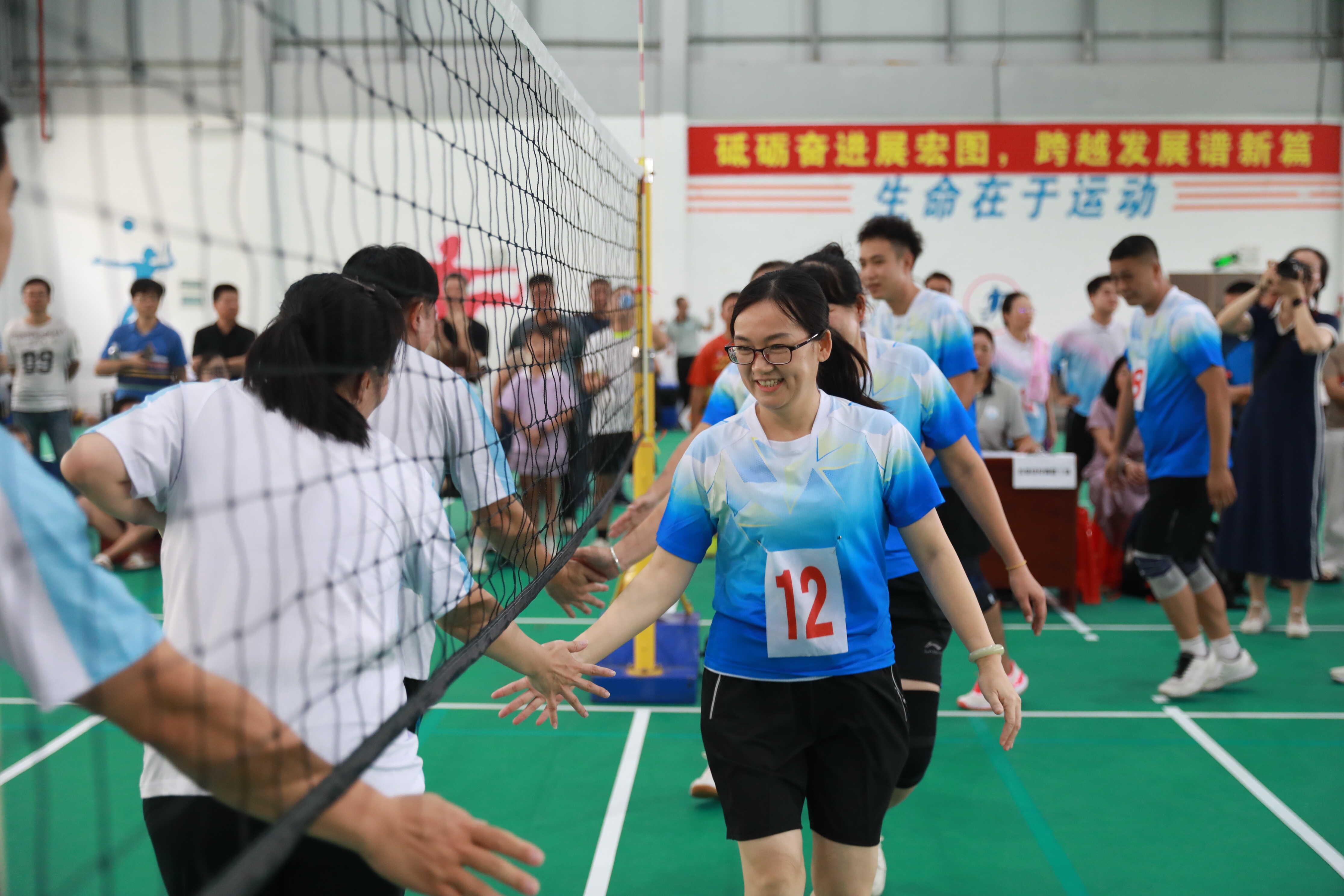 赛场之上,战况如火如荼,各代表队团结协作、奋勇争先,发球、拦网、扣杀等精彩场面迭出,队员们发扬了“友谊第一,比赛第二”的体育精神,赛出了风格,赛出了水平,充分展现了新区职工积极向上的精神风貌。