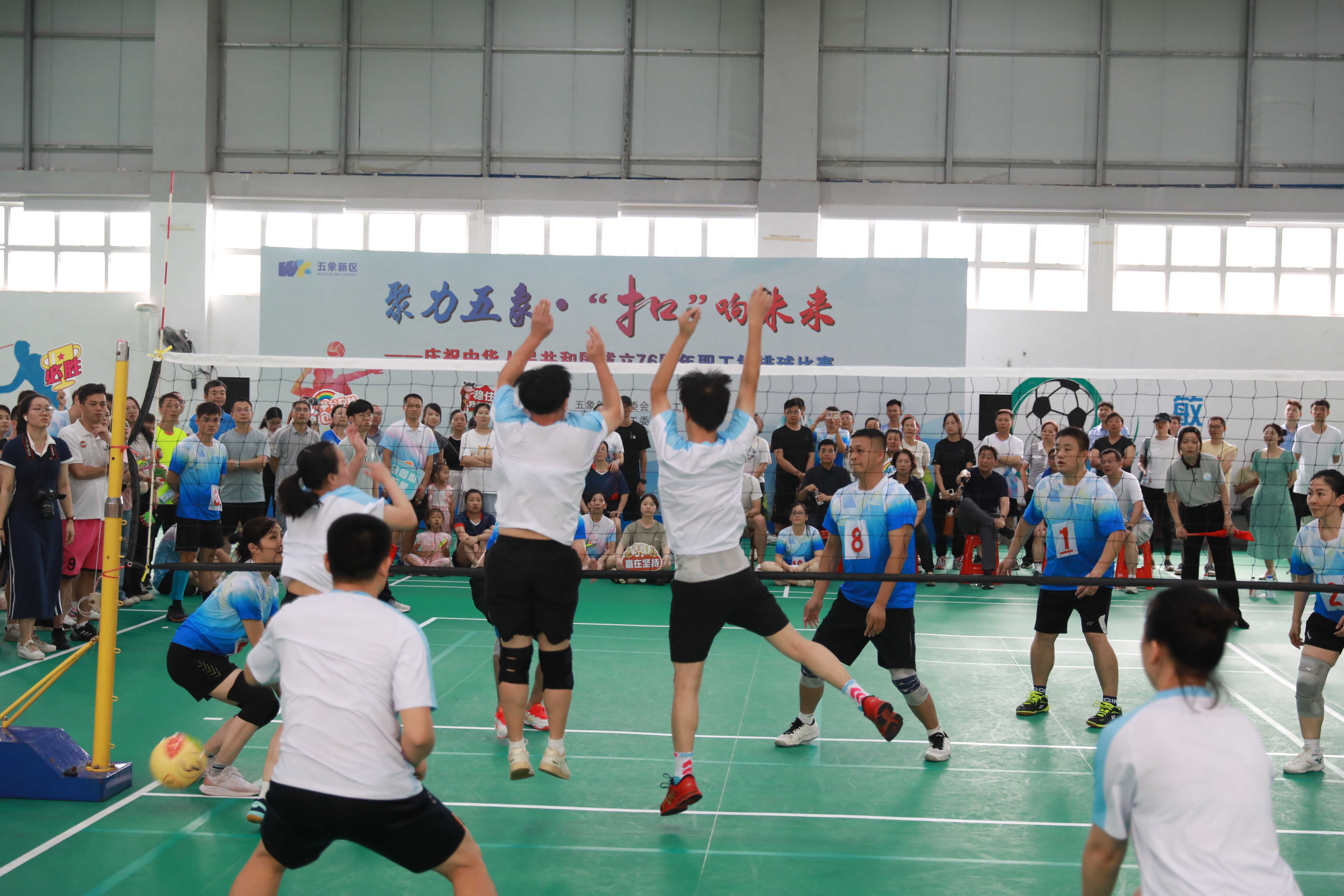 为深入学习贯彻党的二十届三中全会精神,全面落实全民健身国家战略,进一步加强新时代职工精神文明和文化建设,2025年9月20日至21日,五象新区管委会工会工委与经开区工会工委联合主办的“聚力五象・‘扣’响未来”——庆祝中华人民共和国成立76周年职工气排球赛激情开赛。