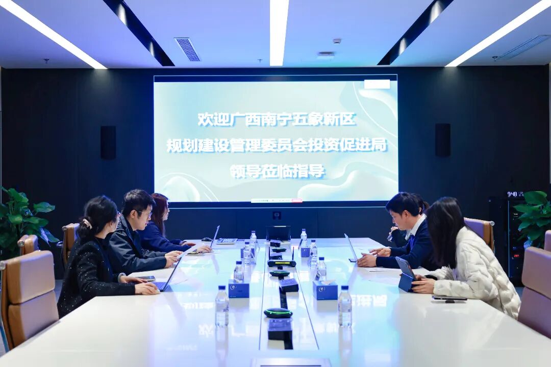 每到一处,招商团队均与企业负责人进行深入座谈,系统介绍五象新区的区位交通、产业布局、政策支持、营商环境等方面综合优势,并重点围绕新区在数字经济、战略性新兴产业等领域的发展规划与配套举措进行解读。同时,认真听取企业发展诉求与合作意向。其中,南宁五象投资集团充分发挥自身优势,从产业基金投资逻辑、股权合作模式、产业链资源整合等维度提供专业支持,协助招商团队精准筛选符合新区产业规划与资本布局的优质企业,为后续高效对接与合作奠定坚实基础。