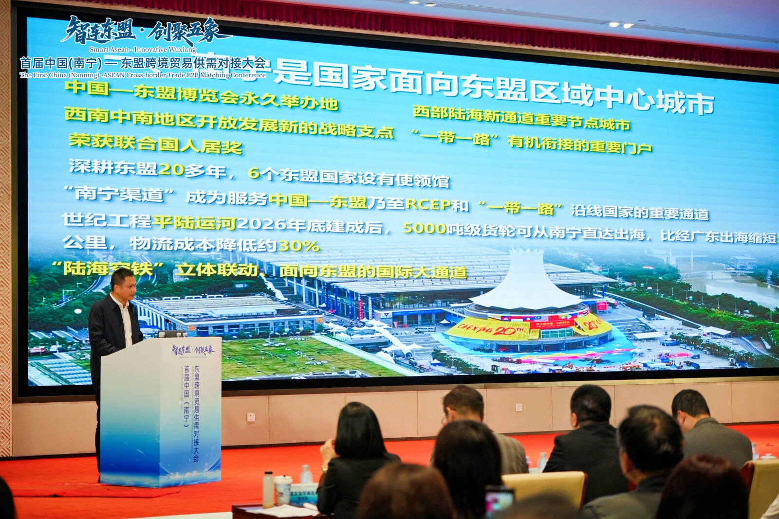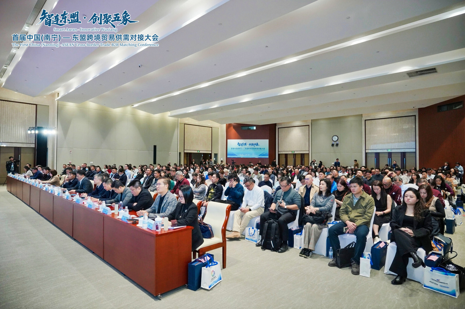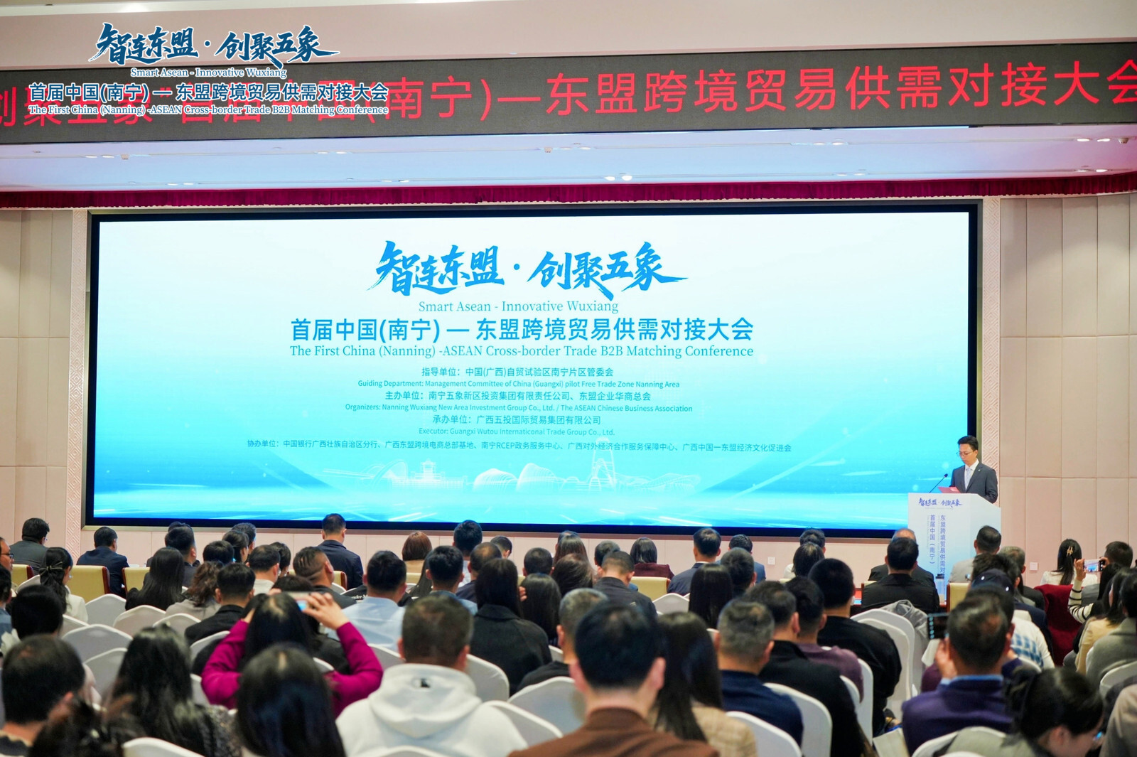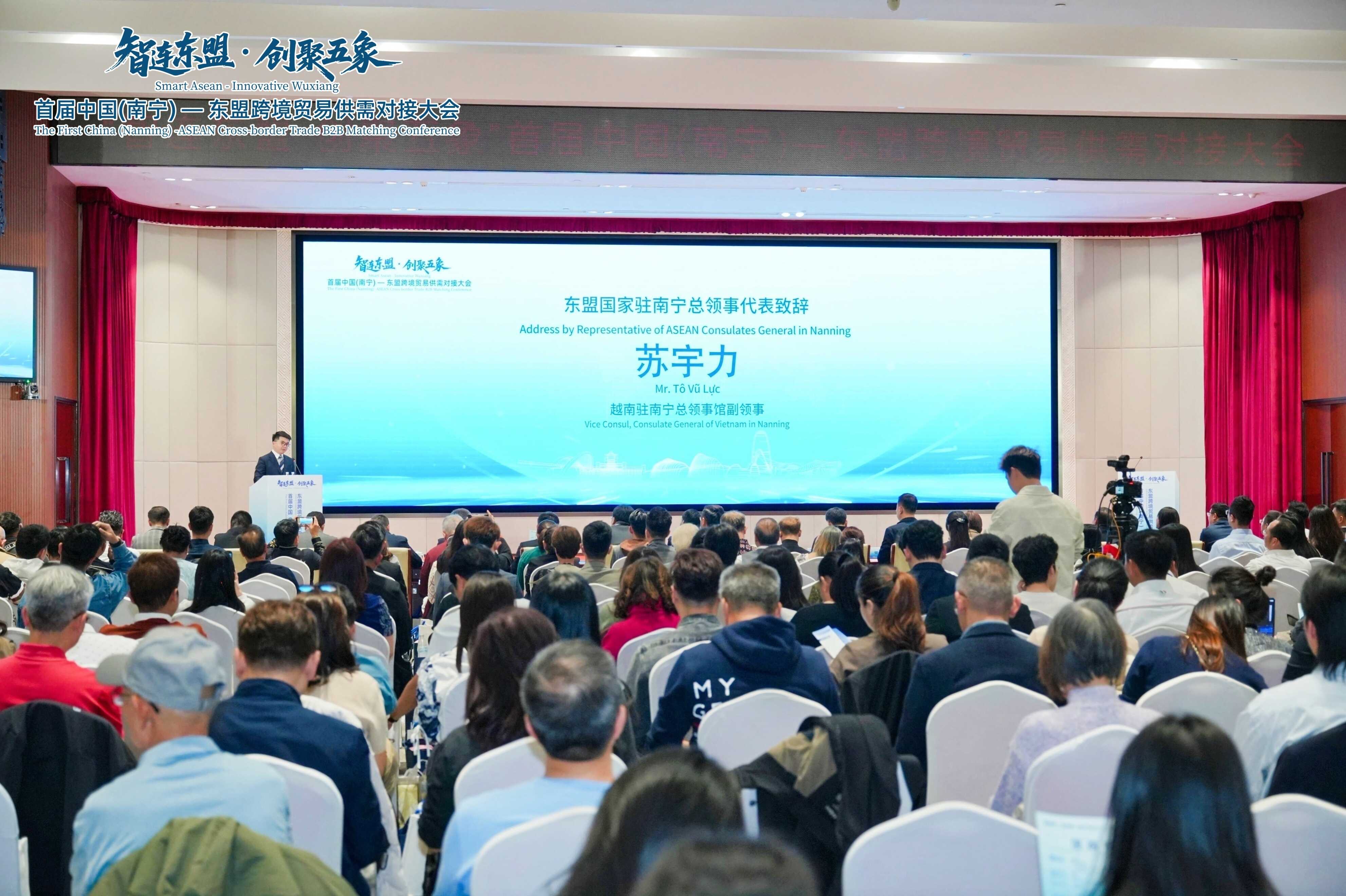 2026年1月15日,“智连东盟·创聚五象”首届中国(南宁)—东盟跨境贸易供需对接大会在五象新区开幕,南宁海关、广西贸促会、市商务局、市外事办公室、市贸促会、五象新区(自贸区南宁片区)管委会、五象投资集团、东盟企业华商总会、五投国贸集团等有关单位,商协会及企业代表约400人参加大会。