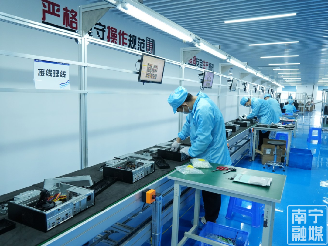 核心部位精密组装、整机性能全面测试、老化考验严苛把关……经过全链条精细化管控,一台台凝聚着“南宁制造”成果的国产计算机顺利打包装箱发往全区各地。日前,创鹏云智造(广西)科技有限公司(以下简称创鹏云智造)生产基地迎来首批计算机正式下线。