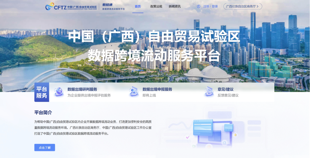 如果出境数据属于负面清单所列行业领域的重要数据,可以通过中国(广西)自由贸易试验区数据跨境流动服务平台采取线上服务方式,按照负面清单要求,申报数据出境安全评估、订立个人信息出境标准合同或通过个人信息保护认证。企业可以通过平台网址直接进入,也可以通过自治区商务厅、广西自贸试验区工作办公室等官方网站链接进入。平台网址:https://sjkj.gxftz.gxzf.gov.cn/fw