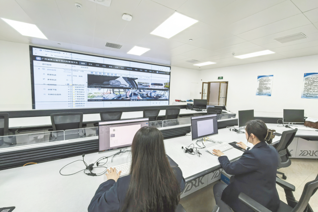 企业的创新脚步并未止于江河。在广西北投信创科技投资集团有限公司打造的广西道路运输车辆安全服务运营中心,巨大的电子屏上光影流动,超19万套北斗智能安防服务设备实时传回的数据,织就了一张“智慧路网”,每一台设备不仅集成北斗高精度定位与多模通信能力,而且融合了AI风险识别模型,实现对疲劳驾驶、盲区风险、车辆异常等行为的实时感知与预警。