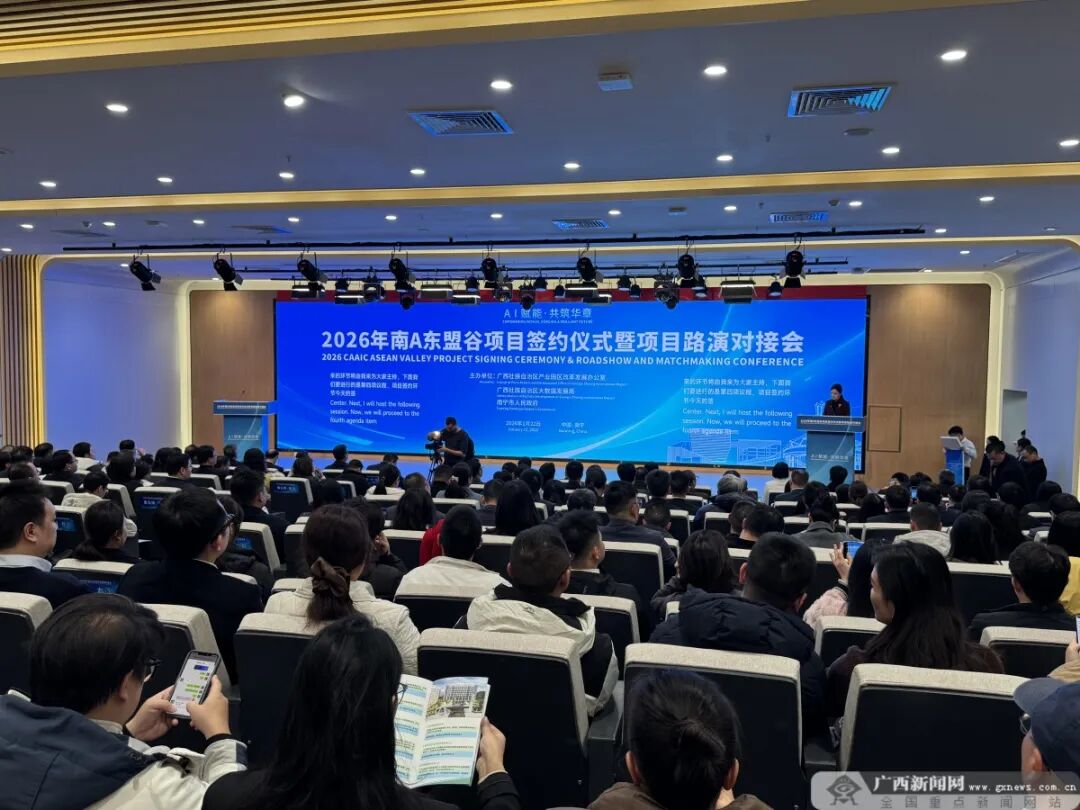 1月22日,由自治区园区办、自治区数据局、南宁市政府联合主办的2026年南A东盟谷项目签约仪式暨项目路演对接会在南A中心举行。此次为南A东盟谷今年首场签约活动,共计超20个项目在现场集中签约,其中东盟企业合作项目6个、A超项目5个,涉及越南、泰国、马来西亚、菲律宾等多个东盟国家,覆盖医疗、物流、文旅等多个领域。