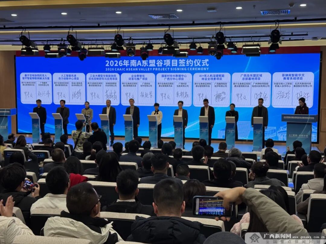 据介绍,南A东盟谷以中国—东盟地理信息与卫星应用产业园(地信产业园)为核心载体,整合五象创新型产业基地二期、三期和南向电子信息产业园等产业载体资源,联动南A中心展示中心、广西人工智能学院等多元平台,通过空间聚合、协同发展,构建了五象核心园区“一轴引领、三组团协同”的发展新格局,可孵化面积达24.5万平方米。此次签约入驻南A东盟谷的国内外优质AI项目,将有助于南宁进一步完善人工智能产业生态链,强化与东盟国家在相关领域的产业联动,为区域经济高质量发展注入强劲动力。
