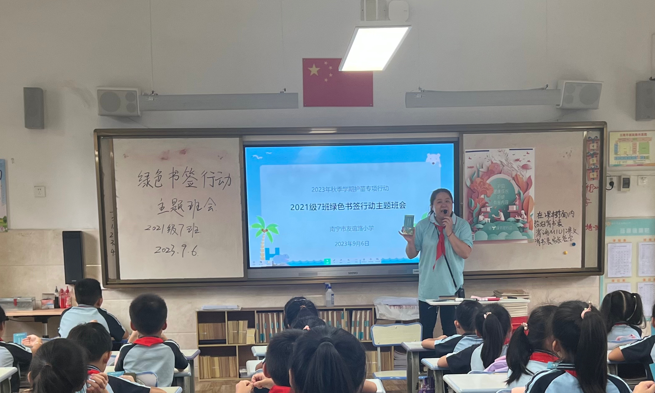 图为南宁市友谊路小学开展“绿书签行动”主题班会