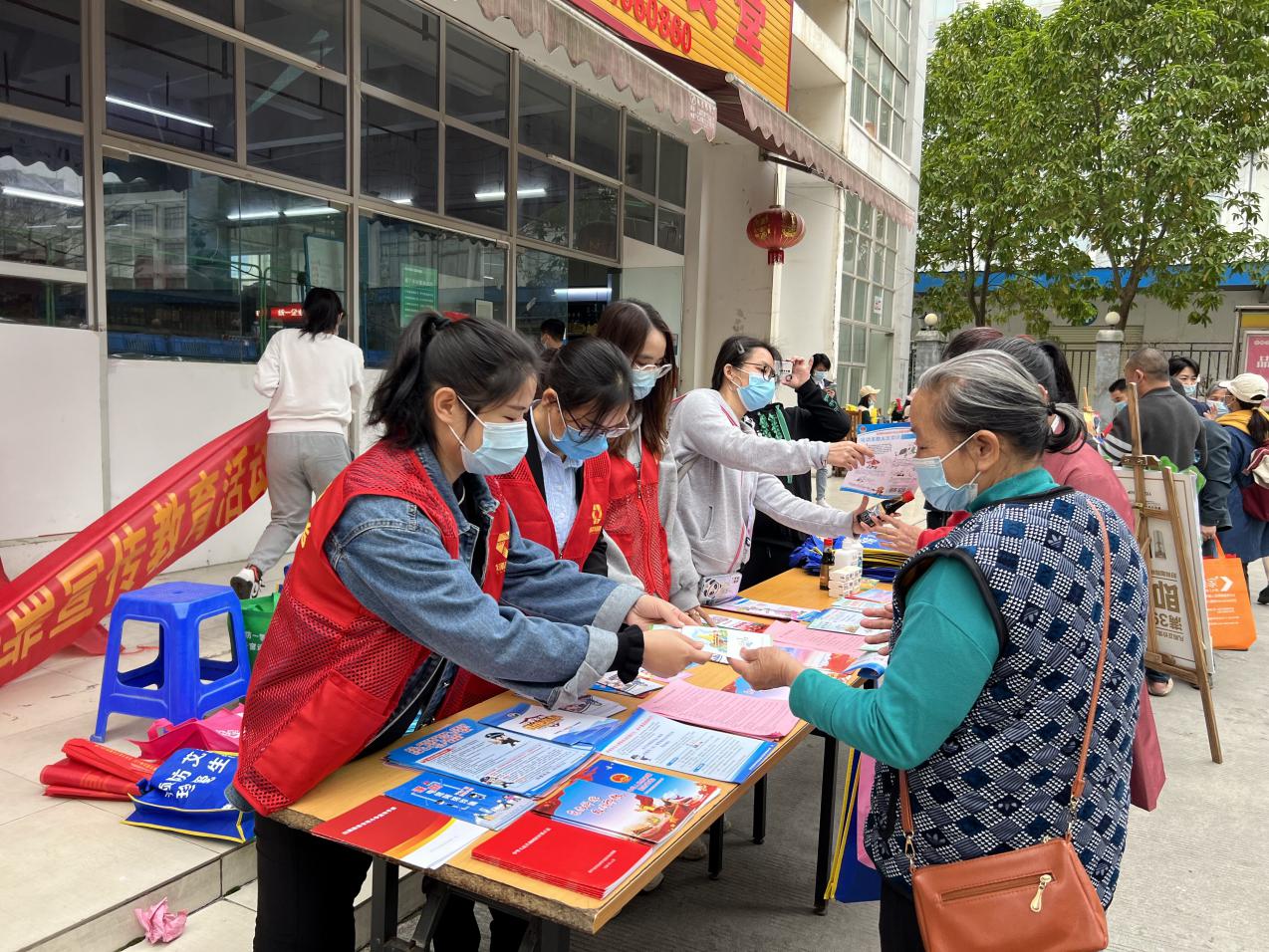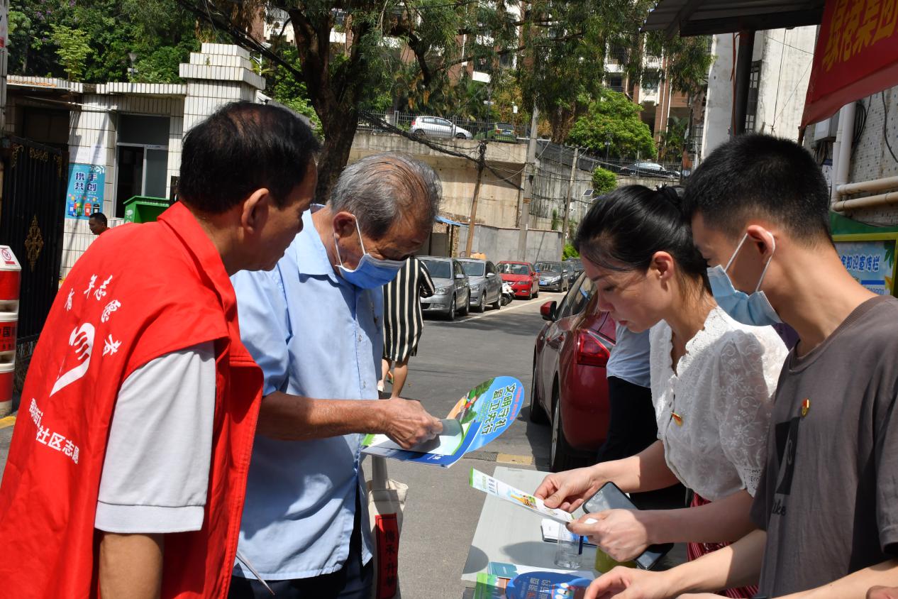志愿者向社区居民发放垃圾分类宣传资料,详细讲解垃圾分类的方法,增强居民对垃圾分类的正确投放意识