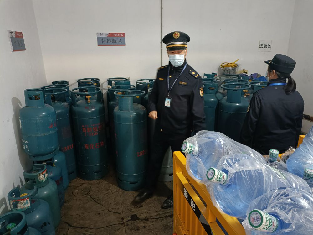 图为执法人员对燃气储存场所进行检查