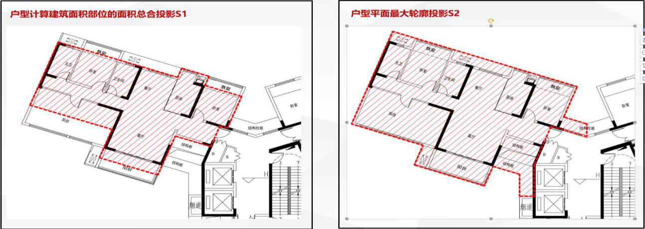 9.优化住房空间形态利用。为提升住房空间设计的灵活性及多样化,每户户型计算建筑面积部位的面积总合与对应户型平面最大轮廓(含空中花园、阳台、飘窗、设备板、结构板、装饰构件、户内凹/洞口等)的投影比值应≥70%(复式及多层联排住宅按综合各层计算)。(附图3)