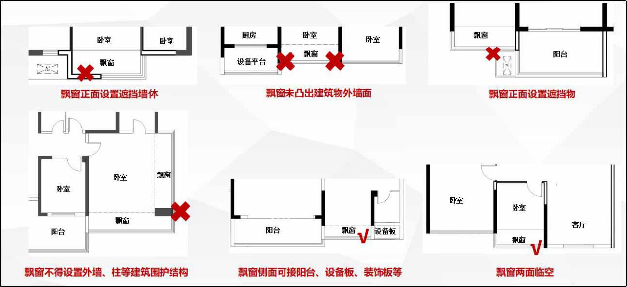 10.优化住房建筑飘窗设置。采用住宅建筑风貌品质提升或空中花园住宅设计的住房建筑,因建筑立面造型需要,飘窗侧面可接阳台、设备板、装饰板等。(附图4)